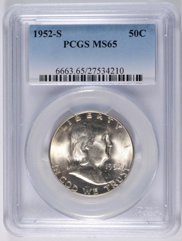 1952-S FRANKLIN HALF DOLLAR, PCGS MS-65 GEM!
