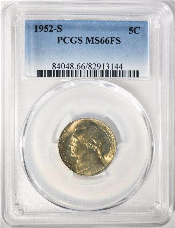 1952-S JEFFERSON NICKEL, PCGS MS-66 FULL STEPS - SUPER RARE MODERN COIN!! ESTIMATE $5000 - $5500.