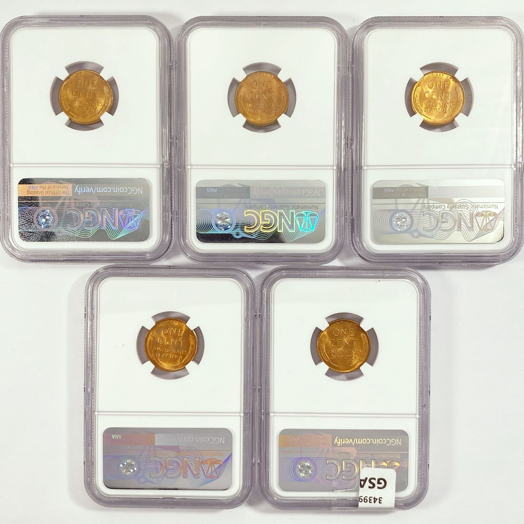 1952-S Set (5) Wheat Cent NGC MS66 RD