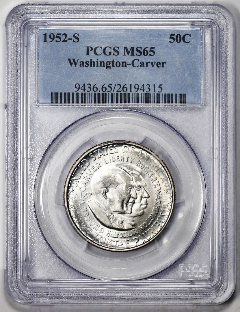 One 1952-S Washington-Carver Commemorative Half Dollar Coin PCGS MS65. PCGS Graded.