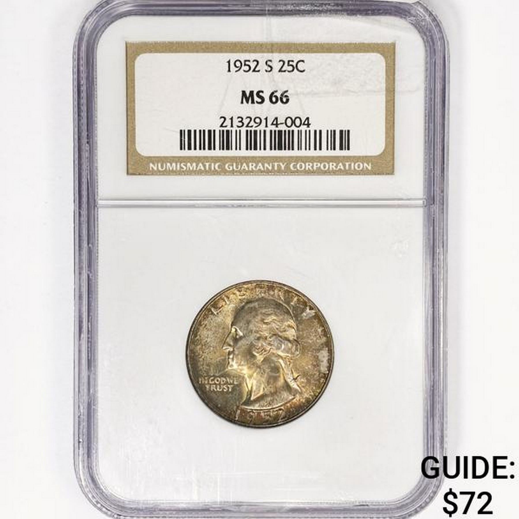 1952-S Washington Silver Quarter NGC MS66