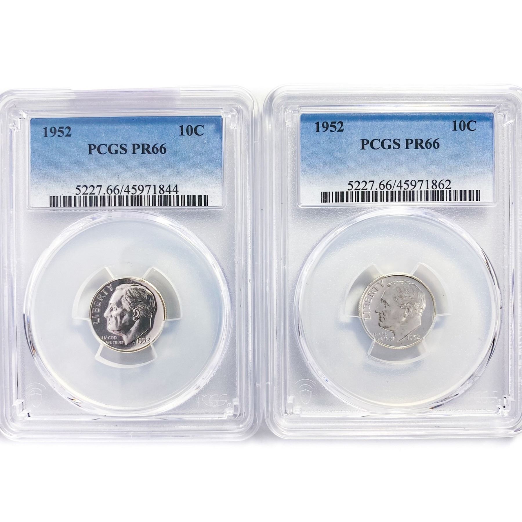 1952 Set (2) Roosevelt Dime PCGS PR66