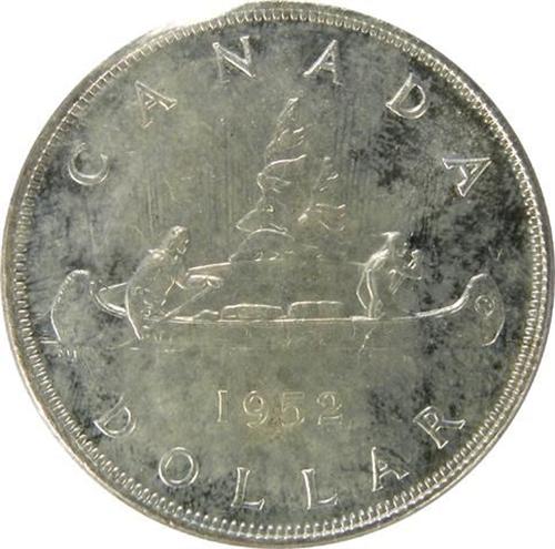 Canada Silver Dollar 1952 Short Waterlines ICCS MS-63. Light golden rim toning