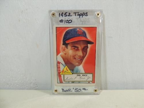 1952 TOPPS #100 BASEBALL PLAYER CARD DEL RICE. AS SHOWN. VIEW PICTURE FOR DETAIL.