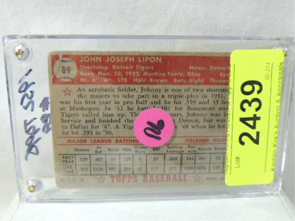 1952 TOPPS JOHNNY LIPON # 89
