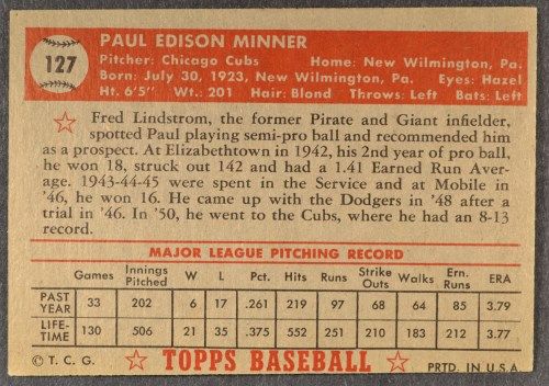 1952 Topps #127  Paul Minner (R)  EM+  Nice