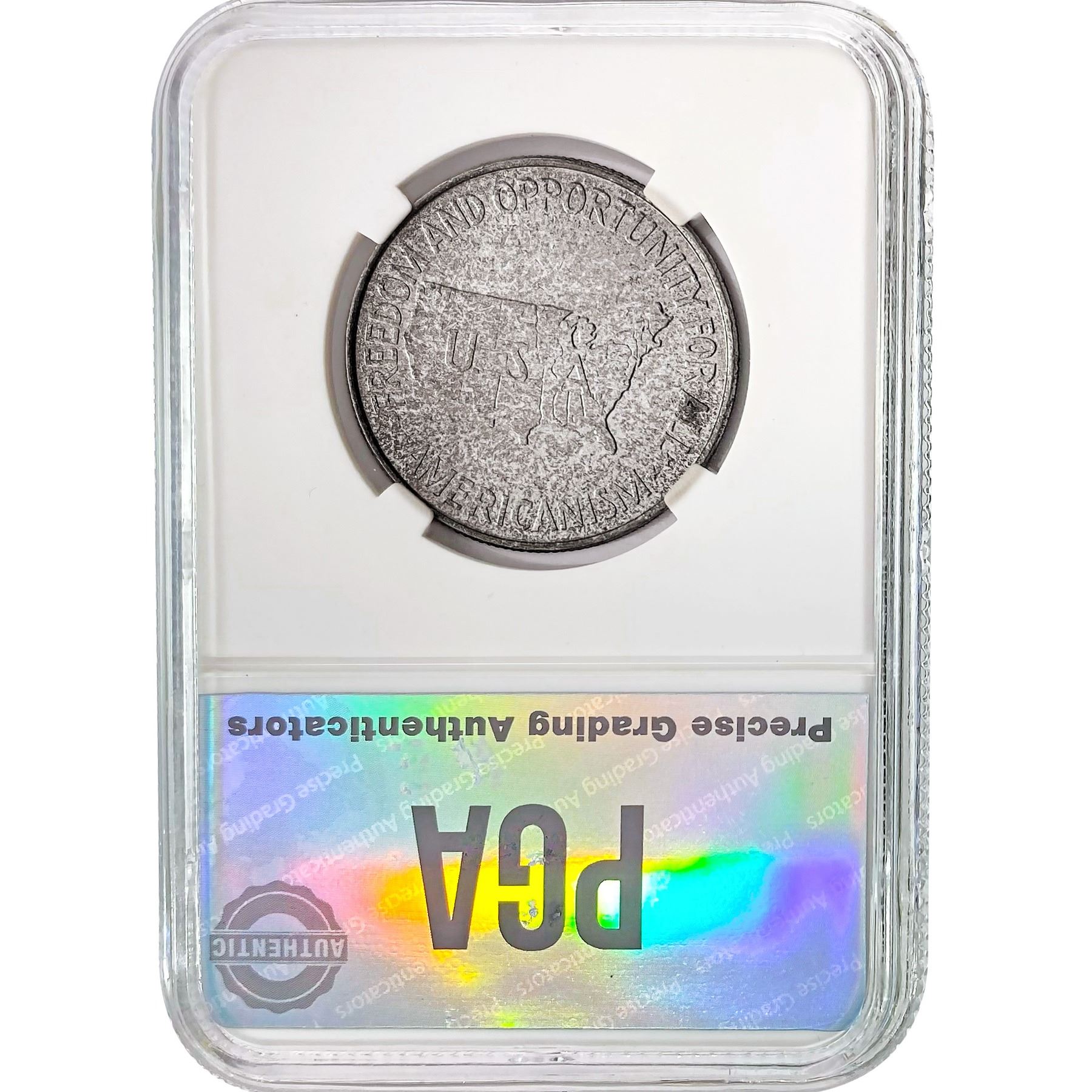 COINS AND CURRENCY LISTED IN GSA’S CATALOG AS GRADED AND ENCAPSULATED BY PCGS, NGC, ANACS, ICG, PCGS CURRENCY, PMG, PCGS BANKNOTE GRADING, CMC OR ANY OTHER THIRD-PARTY GRADING SERVICE ARE LIKEWISE SOLD “AS-IS” EXCEPT AS EXPRESSLY SET FORTH HEREIN. ALL THIRD-PARTY GRADING SERVICE GUARANTEES, INCLUDING AUTHENTICITY, ARE THE SOLE RESPONSIBILITY OF THE THIRD-PARTY GRADING SERVICE AND NOT WARRANTIES OR GUARANTEES OF GSA. BIDDERS SHOULD CONTACT THESE THIRD-PARTY GRADING SERVICES DIRECTLY WITH RESPECT TO ANY CLAIMS OR QUESTIONS THEY MAY HAVE CONCERNING THEIR GUARANTEES AND WARRANTIES. BIDDERS ACKNOWLEDGE AND AGREE THAT AUCTIONEER IS NOT BOUND BY OR LIABLE FOR ANY OPINION OR CERTIFICATION BY ANY THIRD-PARTY GRADING SERVICE. REMOVAL OF A PRODUCT FROM ITS PROTECTIVE CASING OR HOLDER OR ALTERATION OF ANY COIN HOLDER WAIVES ALL RIGHTS CONCERNING THE PRODUCT CONTAINED THEREIN.