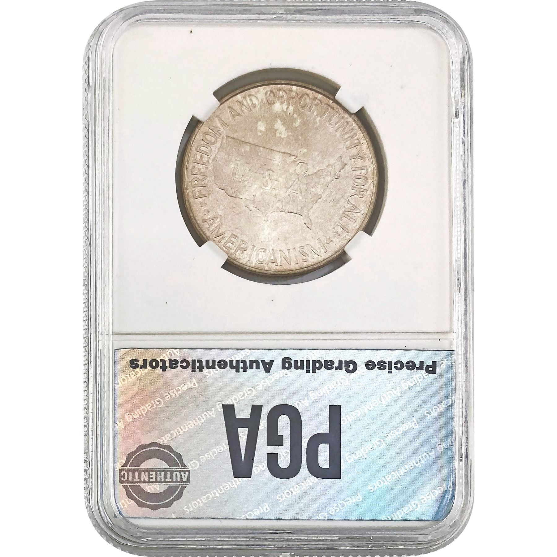 COINS AND CURRENCY LISTED IN GSA’S CATALOG AS GRADED AND ENCAPSULATED BY PCGS, NGC, ANACS, ICG, PCGS CURRENCY, PMG, PCGS BANKNOTE GRADING, CMC OR ANY OTHER THIRD-PARTY GRADING SERVICE ARE LIKEWISE SOLD “AS-IS” EXCEPT AS EXPRESSLY SET FORTH HEREIN. ALL THIRD-PARTY GRADING SERVICE GUARANTEES, INCLUDING AUTHENTICITY, ARE THE SOLE RESPONSIBILITY OF THE THIRD-PARTY GRADING SERVICE AND NOT WARRANTIES OR GUARANTEES OF GSA. BIDDERS SHOULD CONTACT THESE THIRD-PARTY GRADING SERVICES DIRECTLY WITH RESPECT TO ANY CLAIMS OR QUESTIONS THEY MAY HAVE CONCERNING THEIR GUARANTEES AND WARRANTIES. BIDDERS ACKNOWLEDGE AND AGREE THAT AUCTIONEER IS NOT BOUND BY OR LIABLE FOR ANY OPINION OR CERTIFICATION BY ANY THIRD-PARTY GRADING SERVICE. REMOVAL OF A PRODUCT FROM ITS PROTECTIVE CASING OR HOLDER OR ALTERATION OF ANY COIN HOLDER WAIVES ALL RIGHTS CONCERNING THE PRODUCT CONTAINED THEREIN.