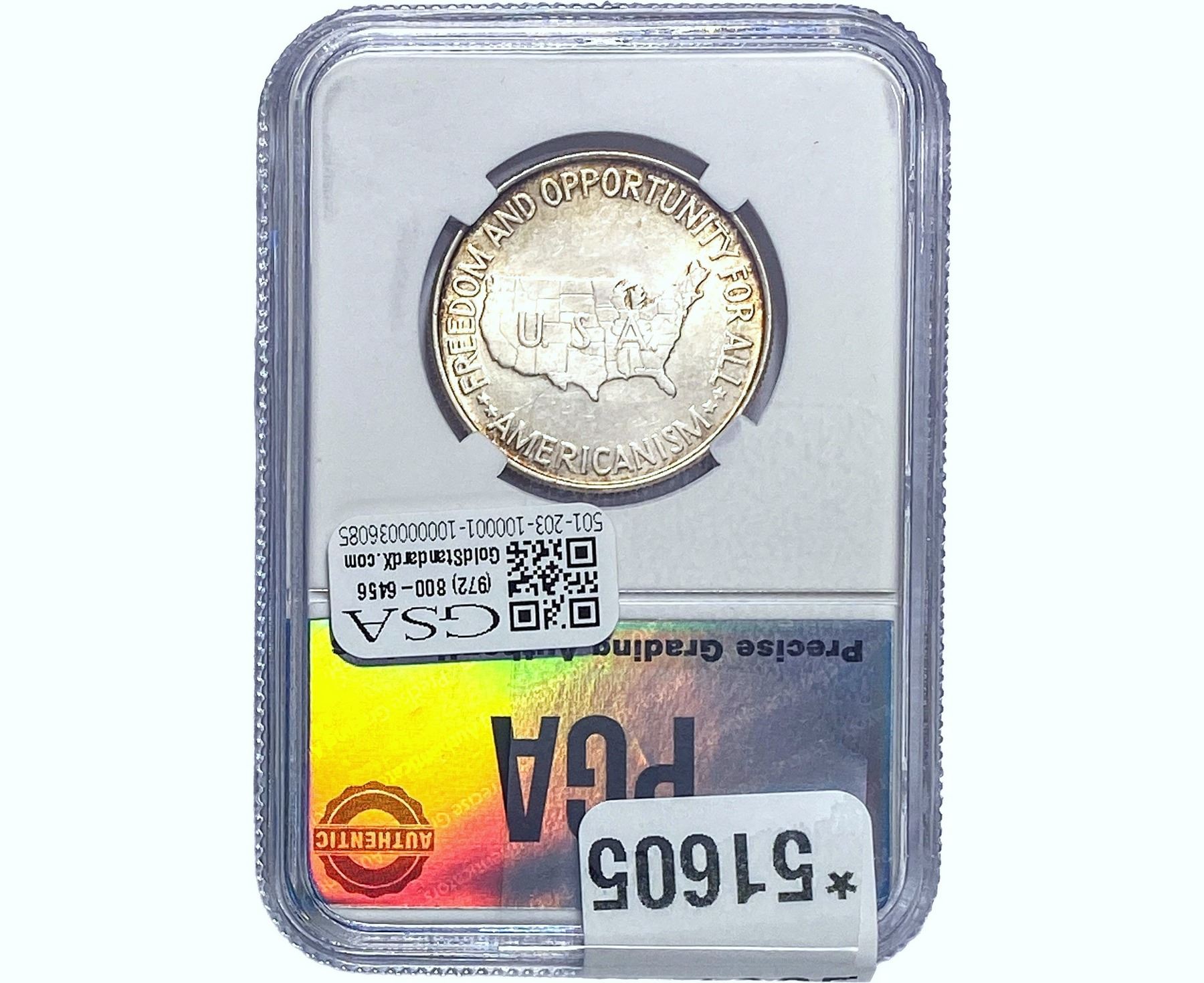 e. Coins sold referencing a third-party grading service are sold “AS IS” without any express or implied warranty, except for a guarantee by GSA that they are genuine. Removal or alteration of the holder, voids all of Bidder’s claims concerning that Product. Certain warranties may be available from the grading services and Bidders are referred to them for further details: Numismatic Guaranty Corporation (NGC), PO Box 4776, Sarasota, FL 34230, www.ngccoin.com/services/writtenguarantee.asp; Professional Coin Grading Services (PCGS), PO Box 9458, Newport Beach, CA 92658, www.pcgs.com/guarantee.html; ANACS, 6555 S. Kenton St., Ste. 303, Englewood, CO 80111; and Independent Coin Grading Co. (ICG), 7901 East Bellview, Ave., Suite 50, Englewood, CO 80111.