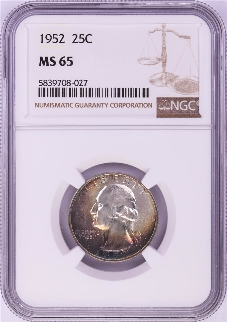 One 1952 Washington Quarter Coin NGC MS65 Nice Toning. NGC Certified.