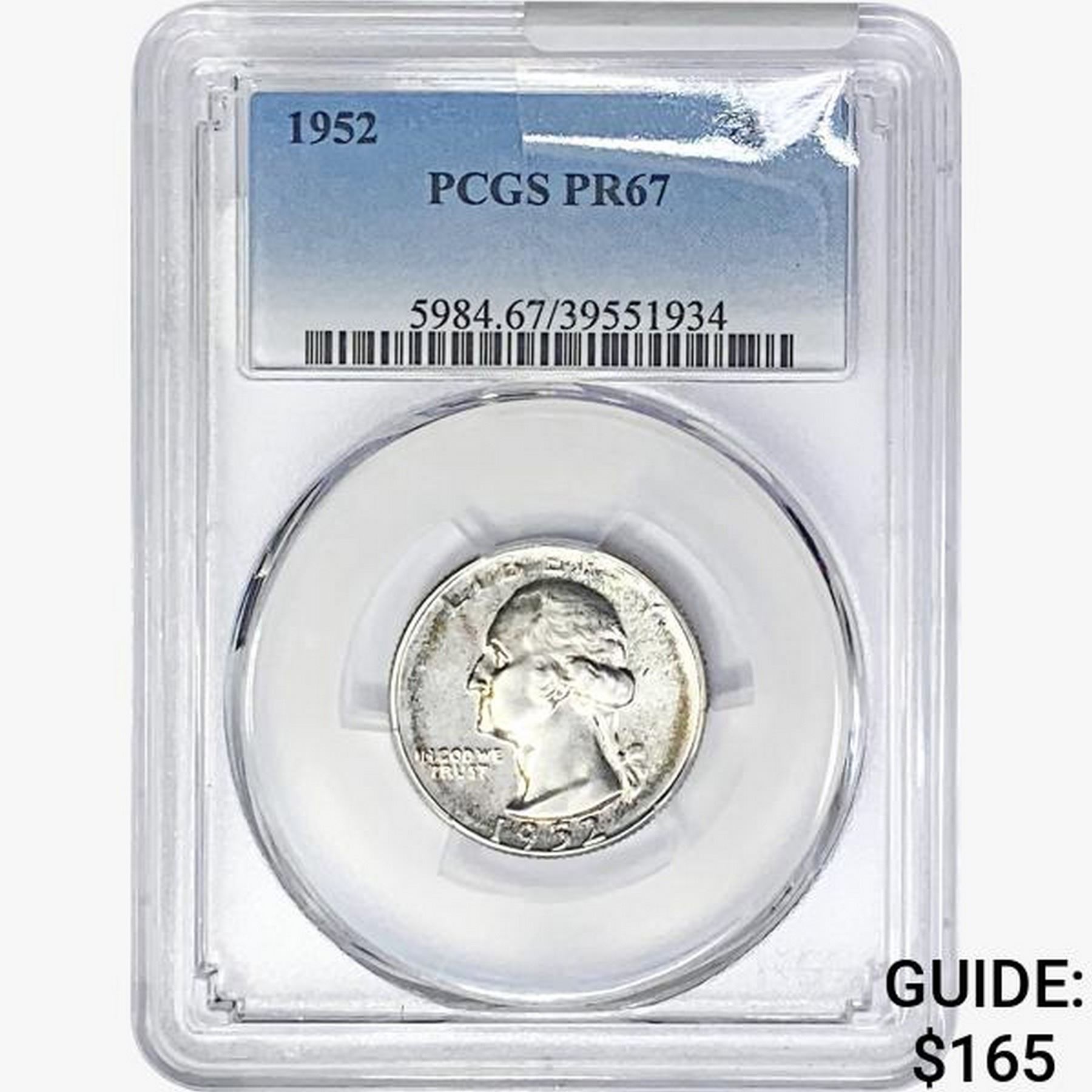 1952 Washington Silver Quarter PCGS PR67