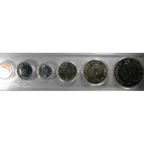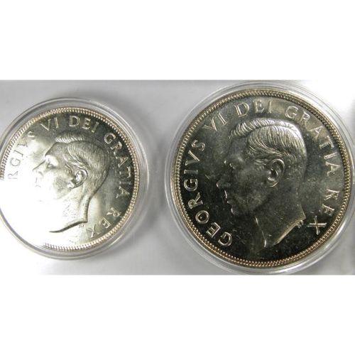1952 Year Set, Uncirculated to Gem Uncirculated. The Dollar has full Waterlines, the Twenty-Five Cents is Low Relief and the Cent is over 90% red