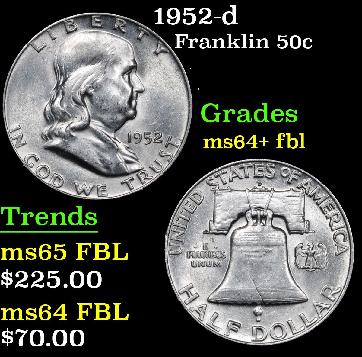 1952-d . . Franklin Half Dollar 50c Grades Choice Unc+ FBL.
