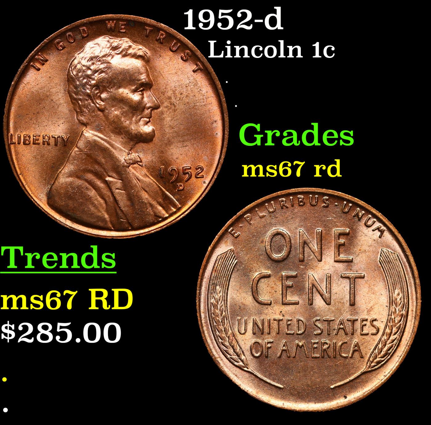 1952-d Lincoln Cent 1c Grades GEM++ Unc RD.