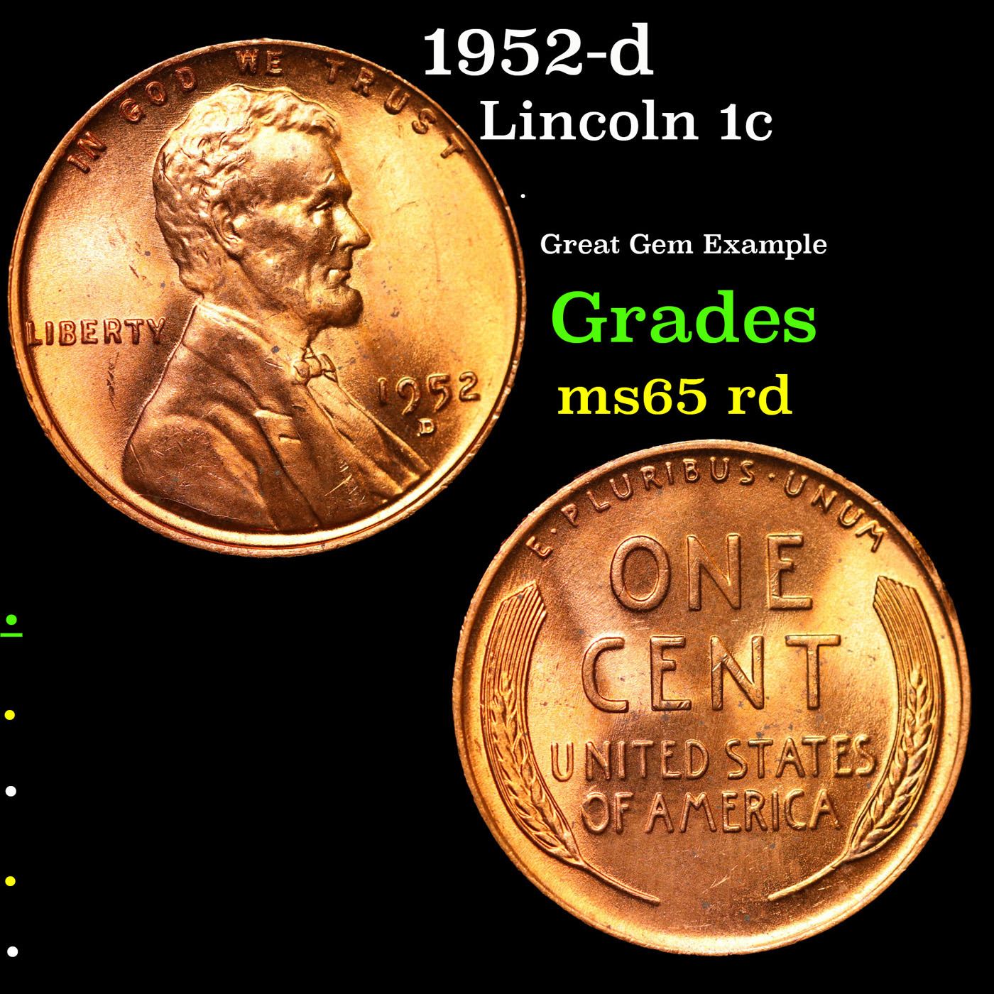 1952-d Lincoln Cent 1c Grades GEM Unc RD.