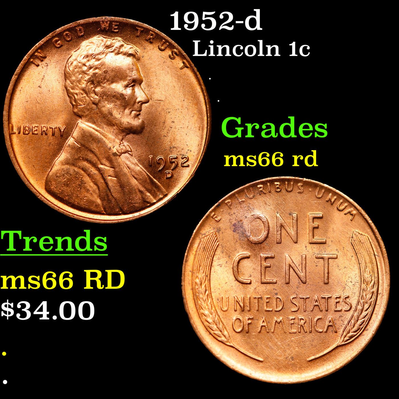 1952-d Lincoln Cent 1c Grades GEM+ Unc RD.
