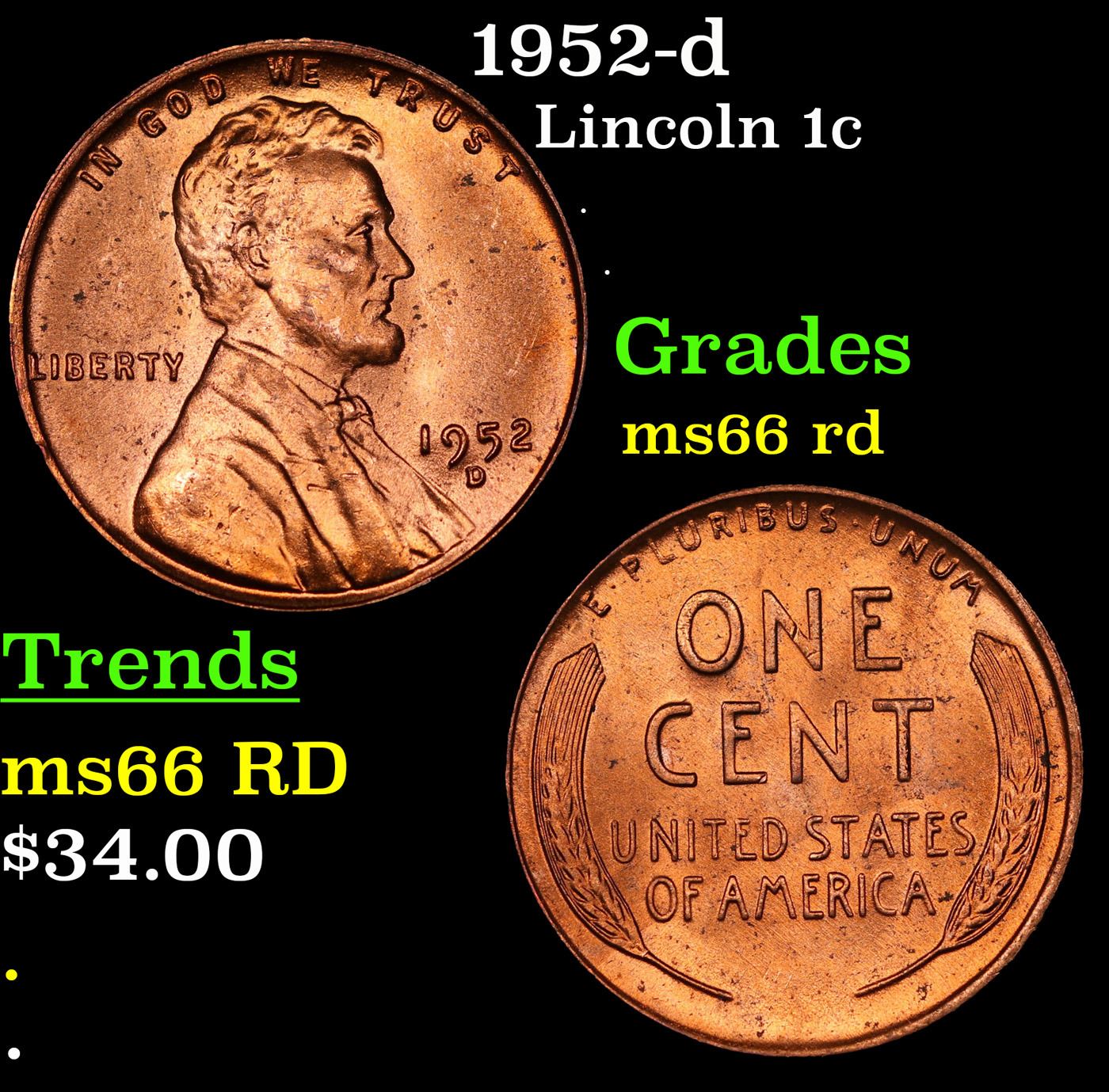 1952-d Lincoln Cent 1c Grades GEM+ Unc RD.
