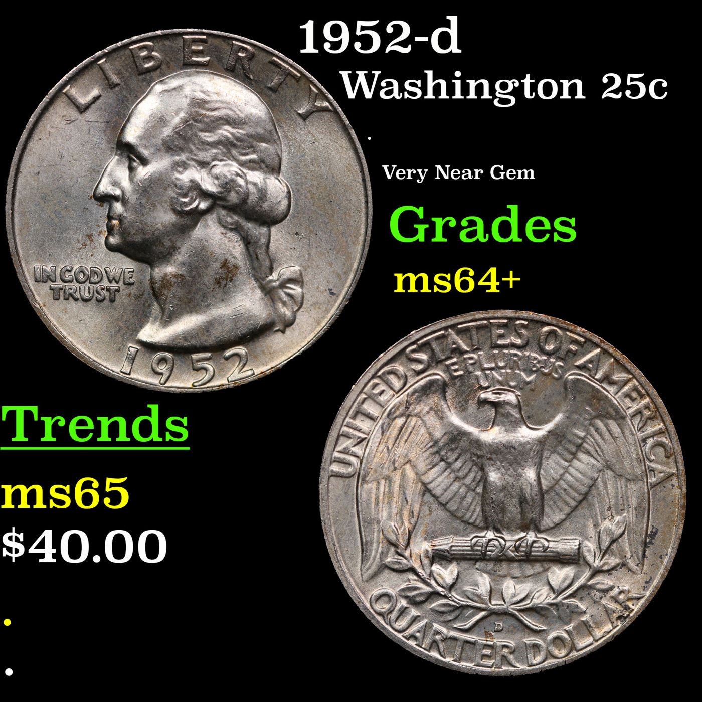 1952-d Washington Quarter 25c Grades Choice+ Unc.