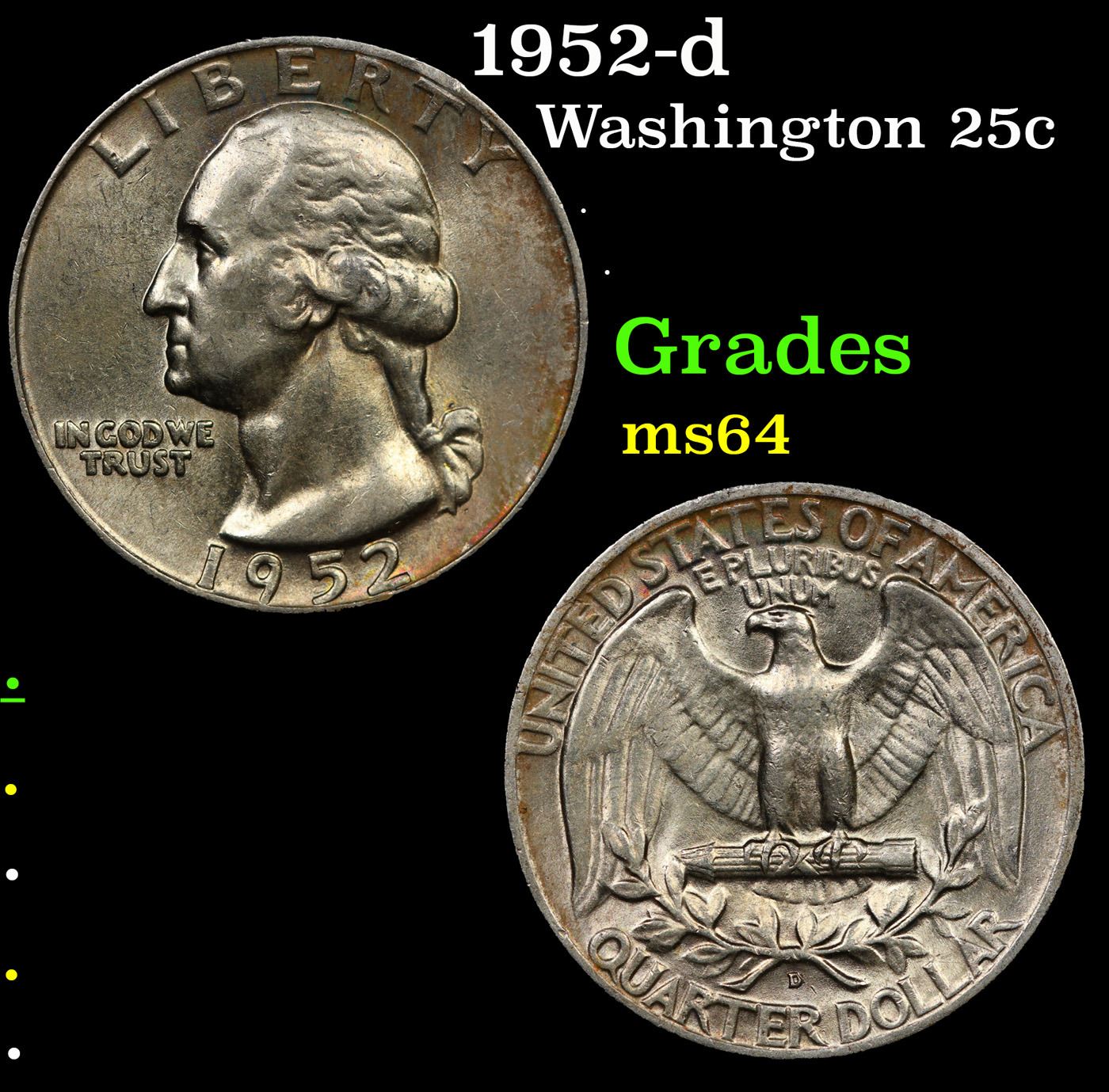 1952-d Washington Quarter 25c Grades Choice Unc.