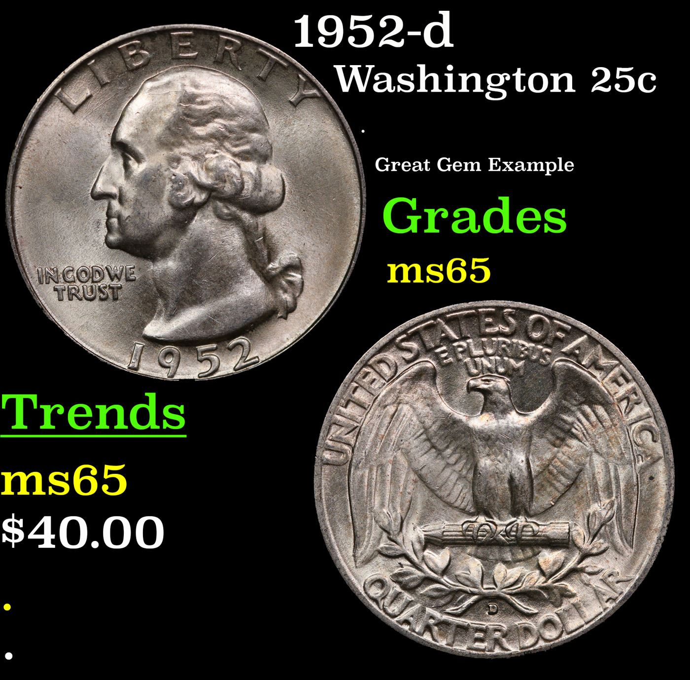 1952-d Washington Quarter 25c Grades GEM+ Unc.