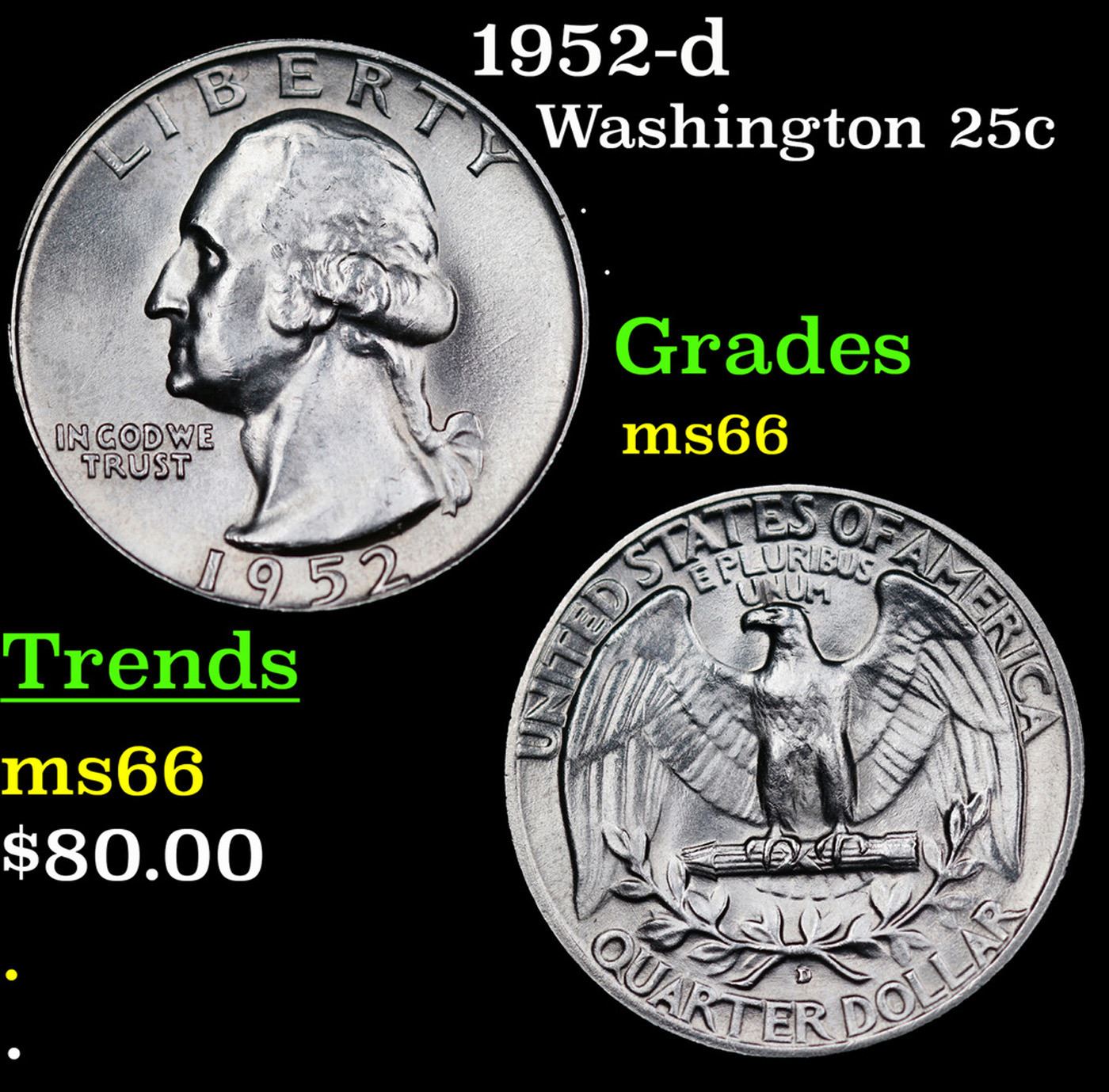 1952-d Washington Quarter 25c Grades GEM+ Unc.