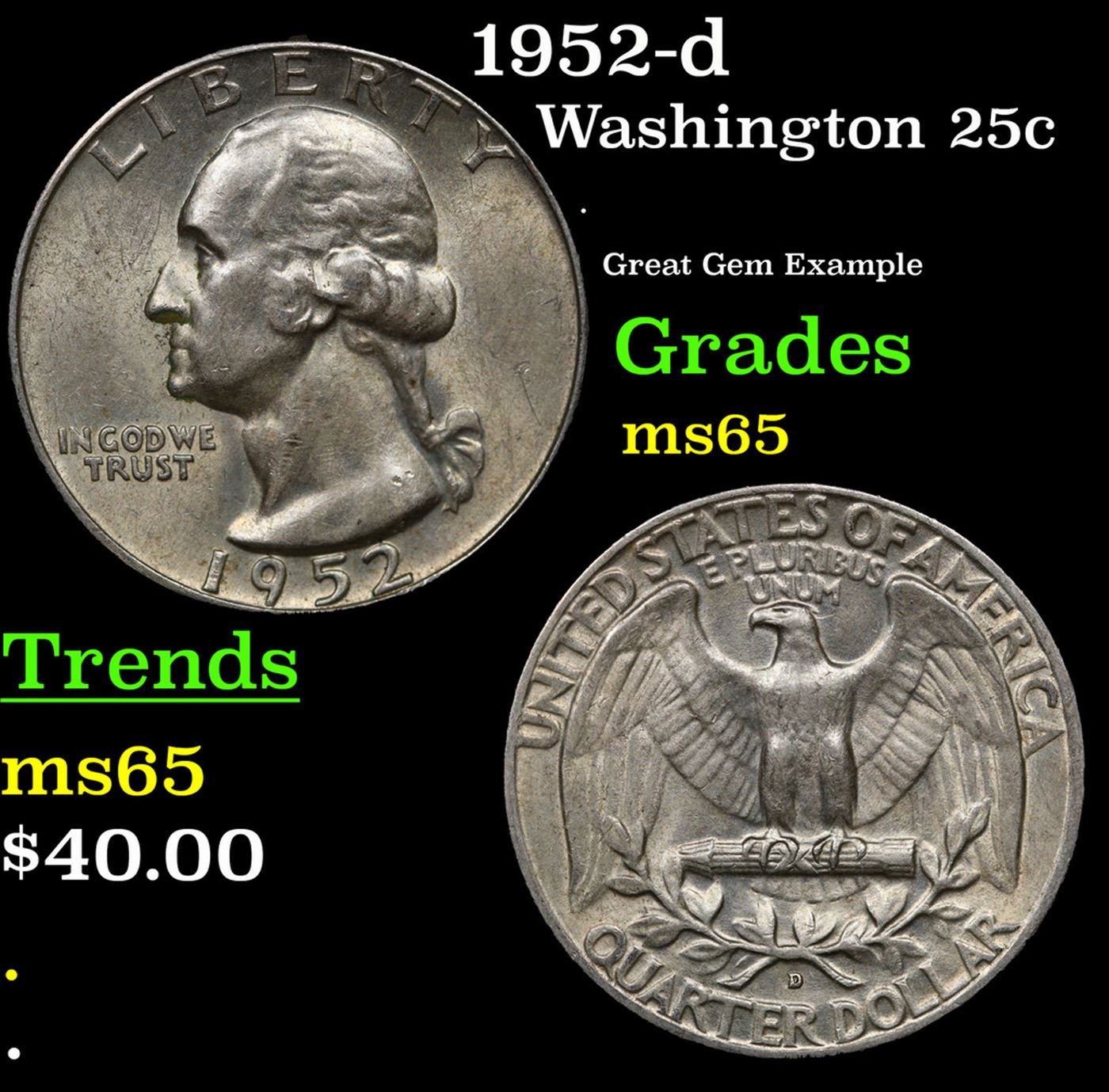 1952-d Washington Quarter 25c Grades GEM Unc.