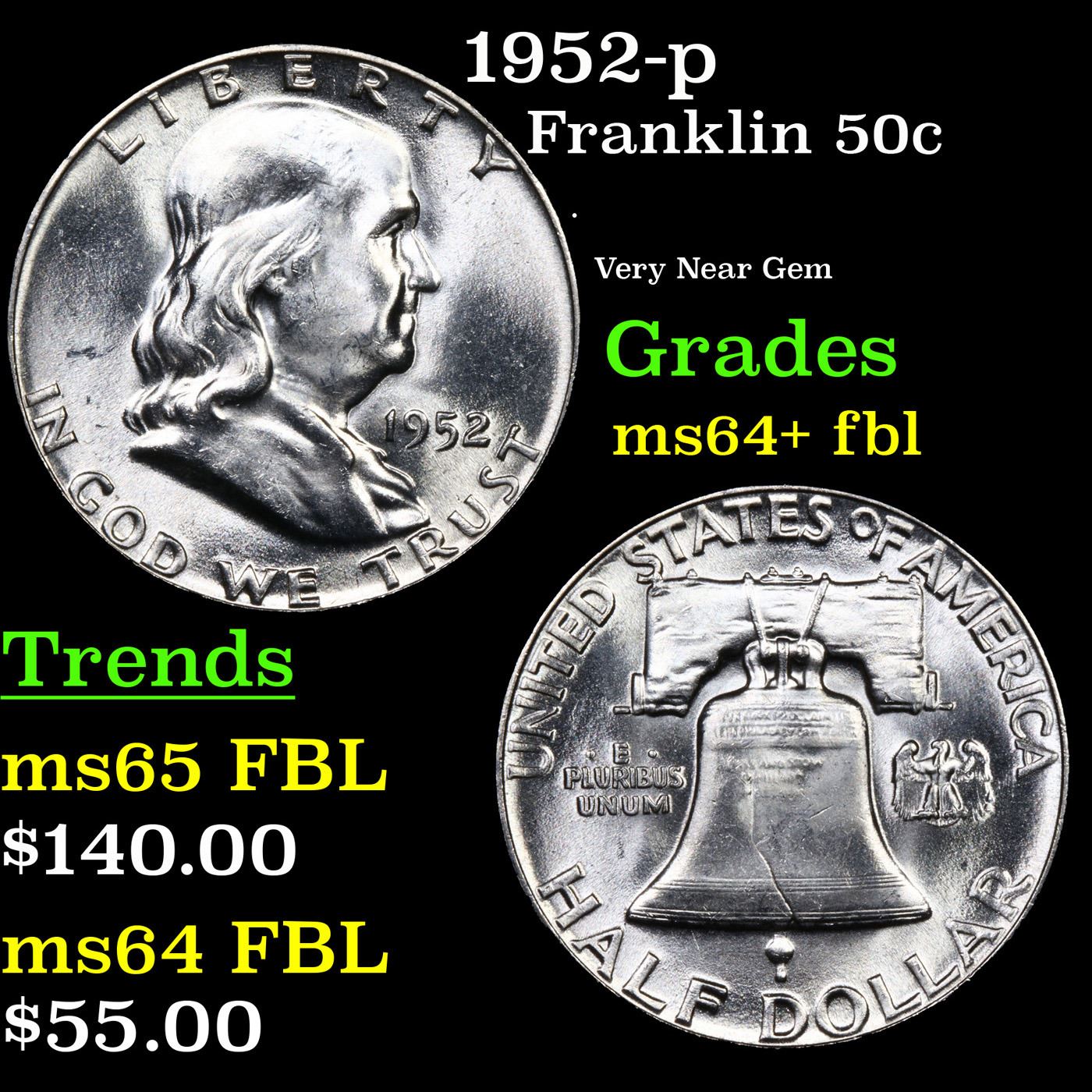 1952-p Franklin Half Dollar 50c Grades Choice Unc+ FBL.