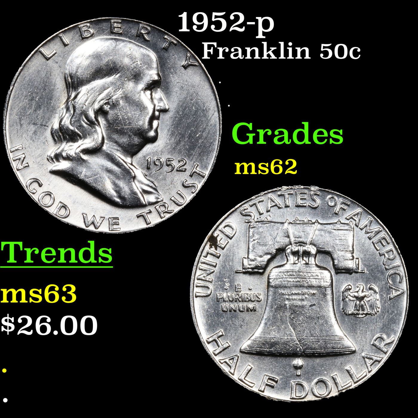 1952-p Franklin Half Dollar 50c Grades Select Unc.