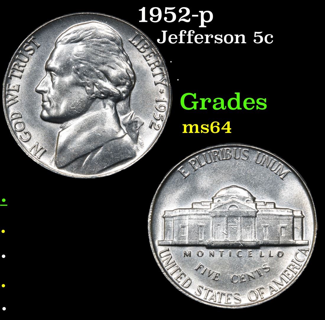 1952-p . . Jefferson Nickel 5c Grades Choice Unc.