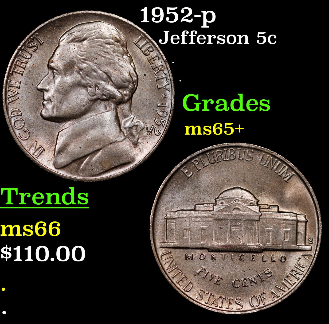 1952-p Jefferson Nickel 5c Grades GEM+ Unc.