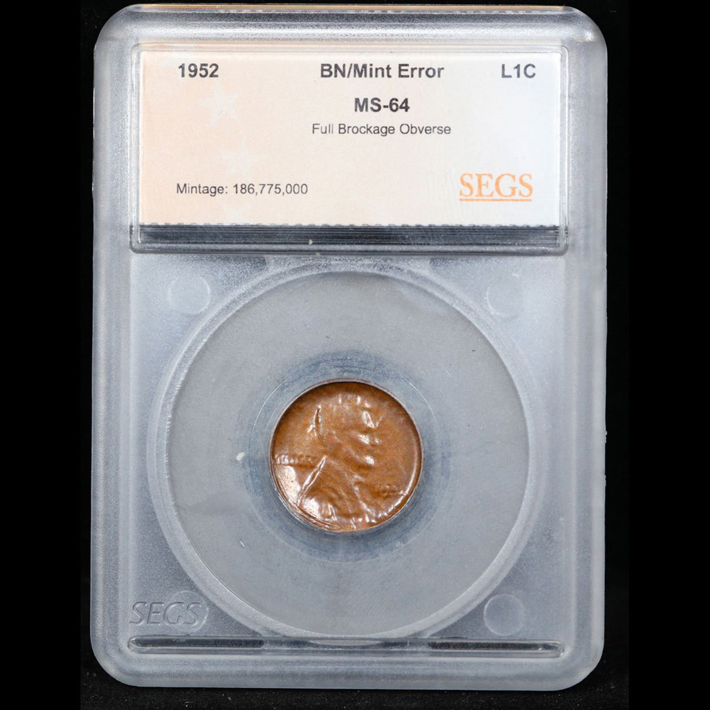 1952-p Mint Error Lincoln Cent 1c Graded ms64 bn By SEGS.