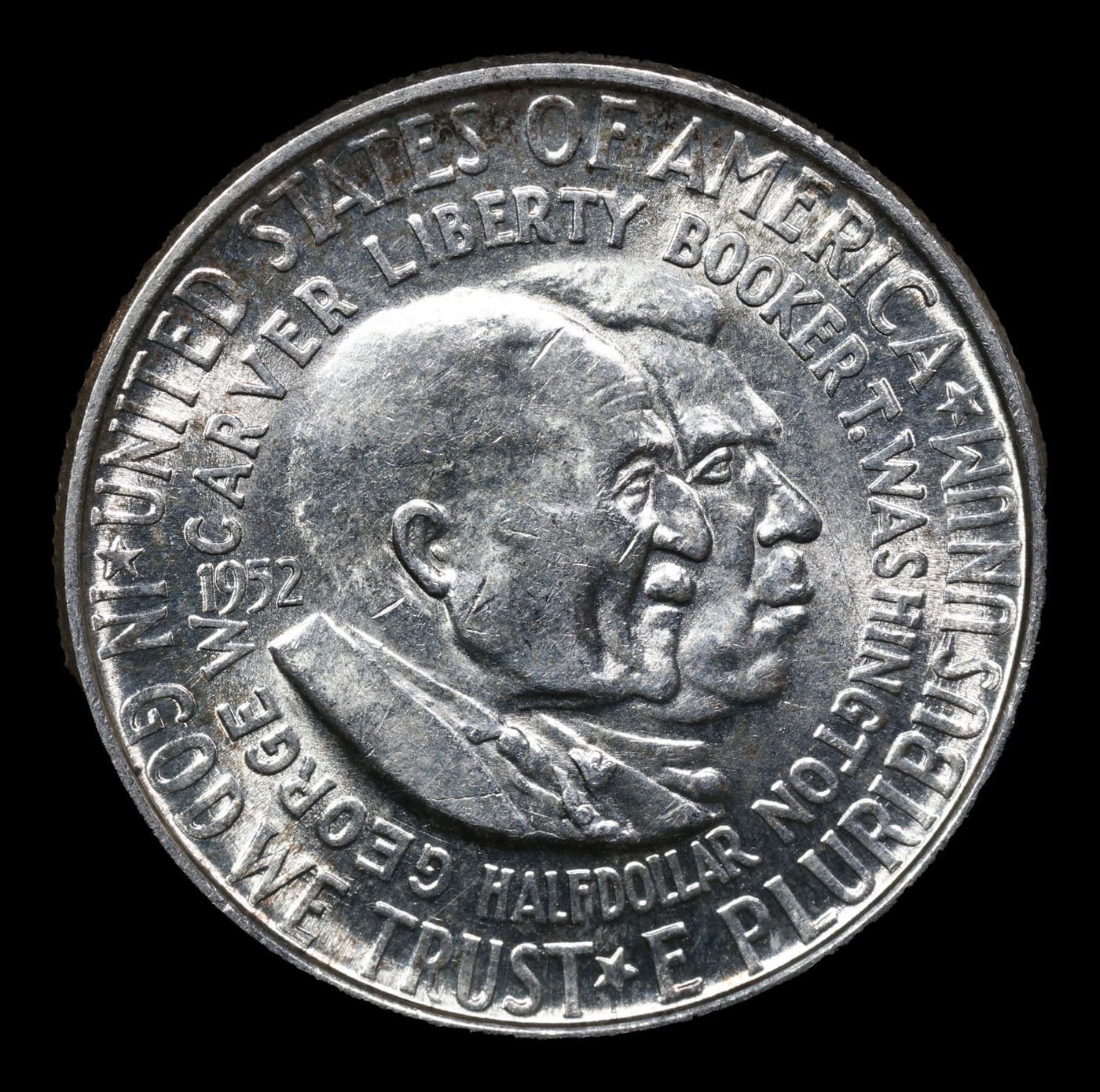 1952-p Wash/Car Old Commem Half Dollar 50c Grades Choice Unc. The Final Coin in the Old Commemorative Program. It was Minted to Revive the Ending Booker T Washington Commemorative and to Honor Washington Carver. When examining a Wash/Carver examine the High Points, which are Carver's cheek on the Obverse and the Center of the USA on the Reverse.