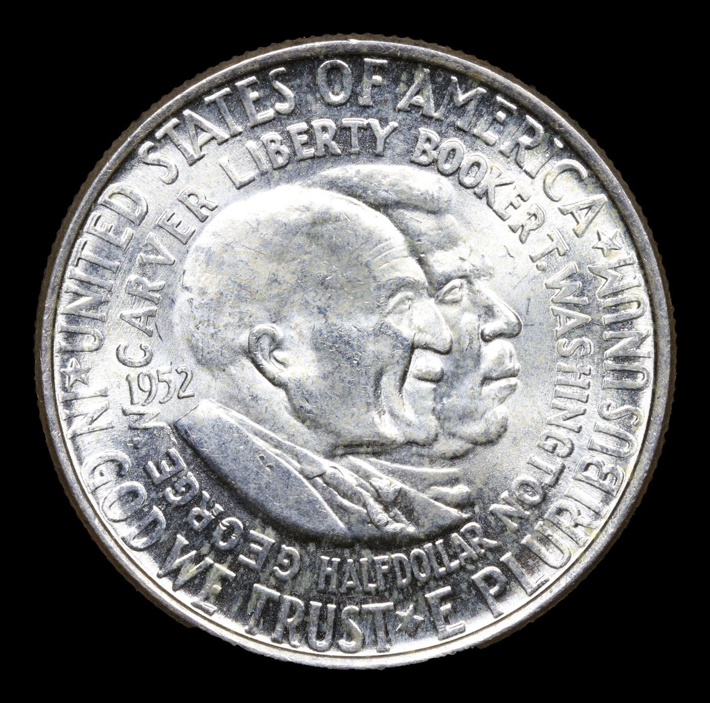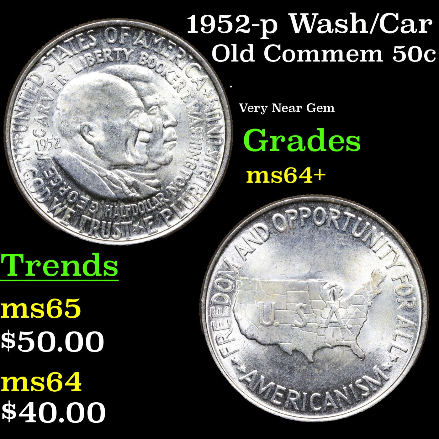 1952-p Wash/Car Old Commem Half Dollar 50c Grades Choice+ Unc. The Final Coin in the Old Commemorative Program. It was Minted to Revive the Ending Booker T Washington Commemorative and to Honor Washington Carver. When examining a Wash/Carver examine the High Points, which are Carver's cheek on the Obverse and the Center of the USA on the Reverse.