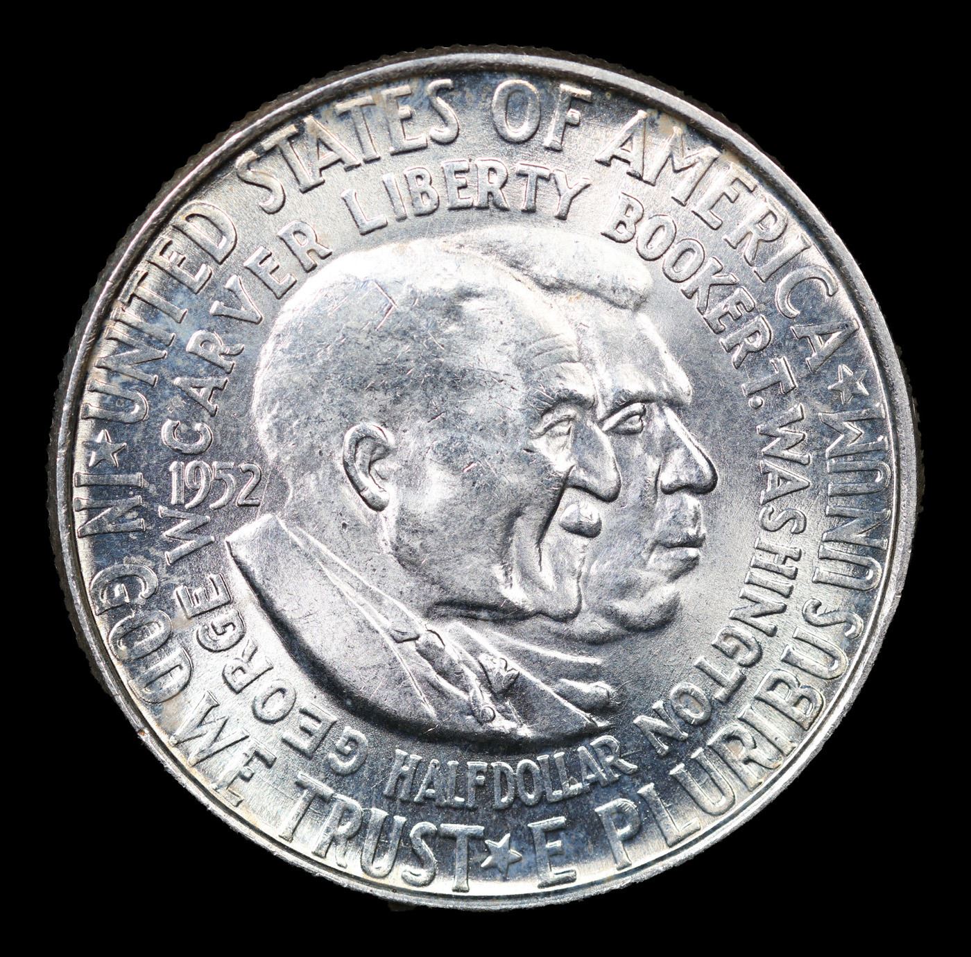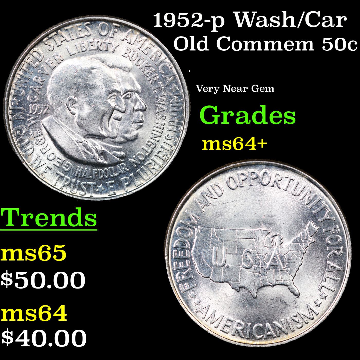 1952-p Wash/Car Old Commem Half Dollar 50c Grades Choice+ Unc. The Final Coin in the Old Commemorative Program. It was Minted to Revive the Ending Booker T Washington Commemorative and to Honor Washington Carver. When examining a Wash/Carver examine the High Points, which are Carver's cheek on the Obverse and the Center of the USA on the Reverse.
