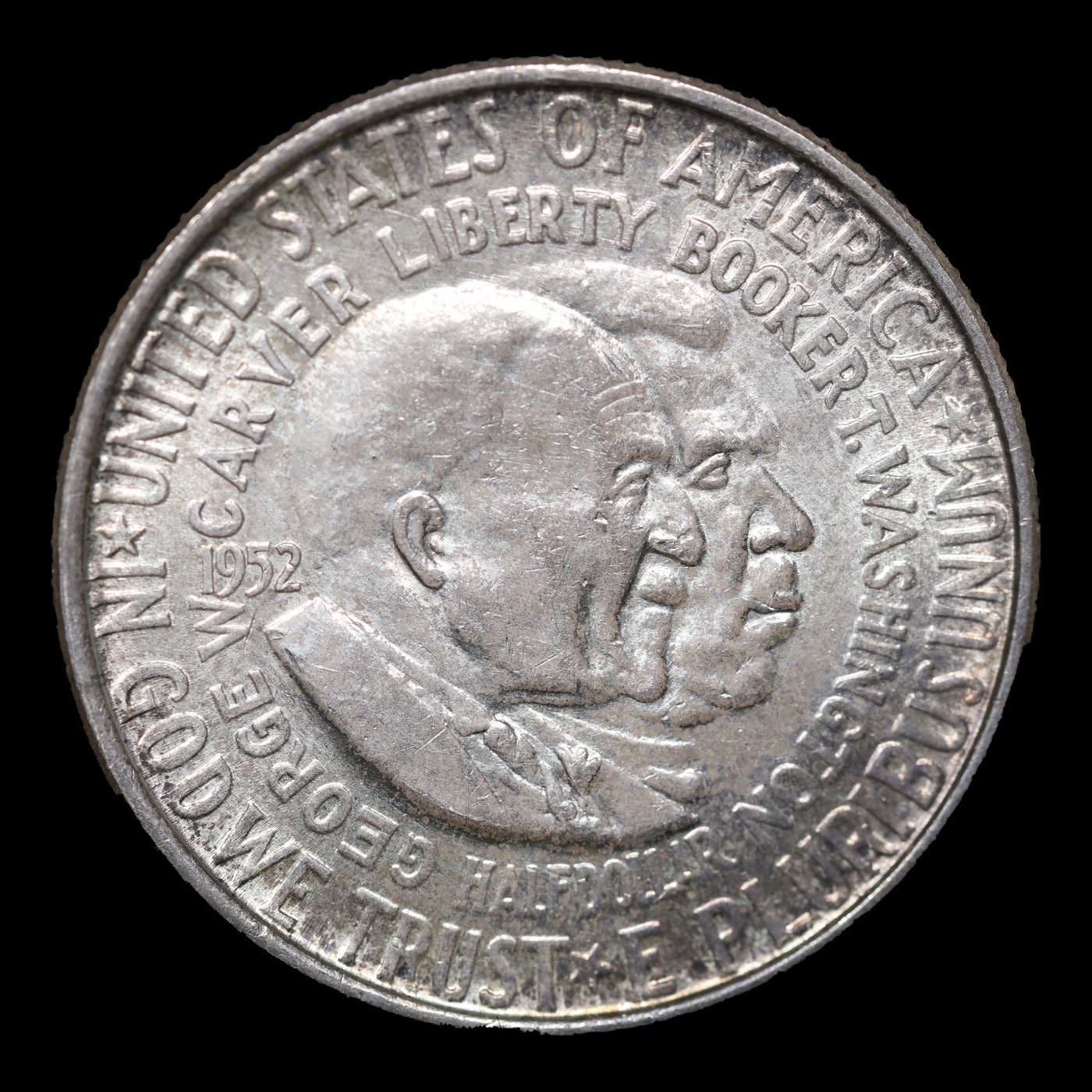 1952-p Wash/Car Old Commem Half Dollar 50c Grades Select+ Unc. The Final Coin in the Old Commemorative Program. It was Minted to Revive the Ending Booker T Washington Commemorative and to Honor Washington Carver. When examining a Wash/Carver examine the High Points, which are Carver's cheek on the Obverse and the Center of the USA on the Reverse.
