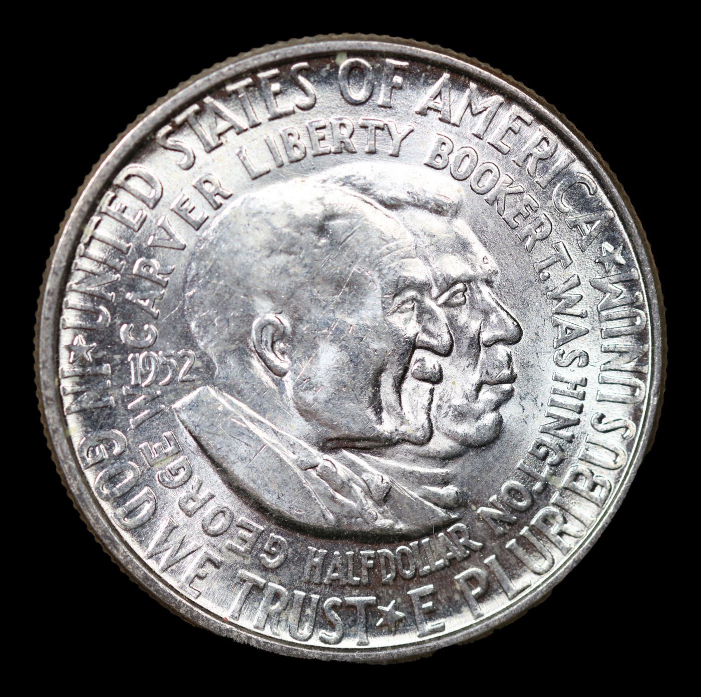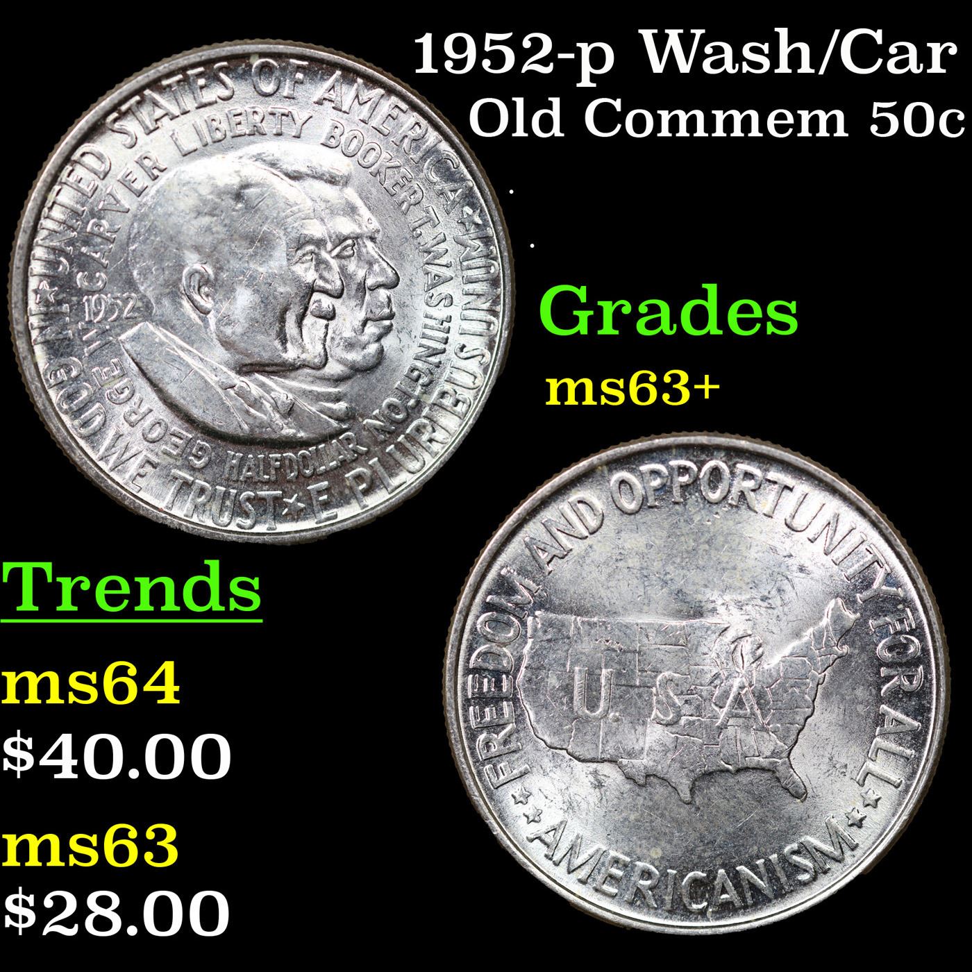 1952-p Wash/Car Old Commem Half Dollar 50c Grades Select+ Unc. The Final Coin in the Old Commemorative Program. It was Minted to Revive the Ending Booker T Washington Commemorative and to Honor Washington Carver. When examining a Wash/Carver examine the High Points, which are Carver's cheek on the Obverse and the Center of the USA on the Reverse.
