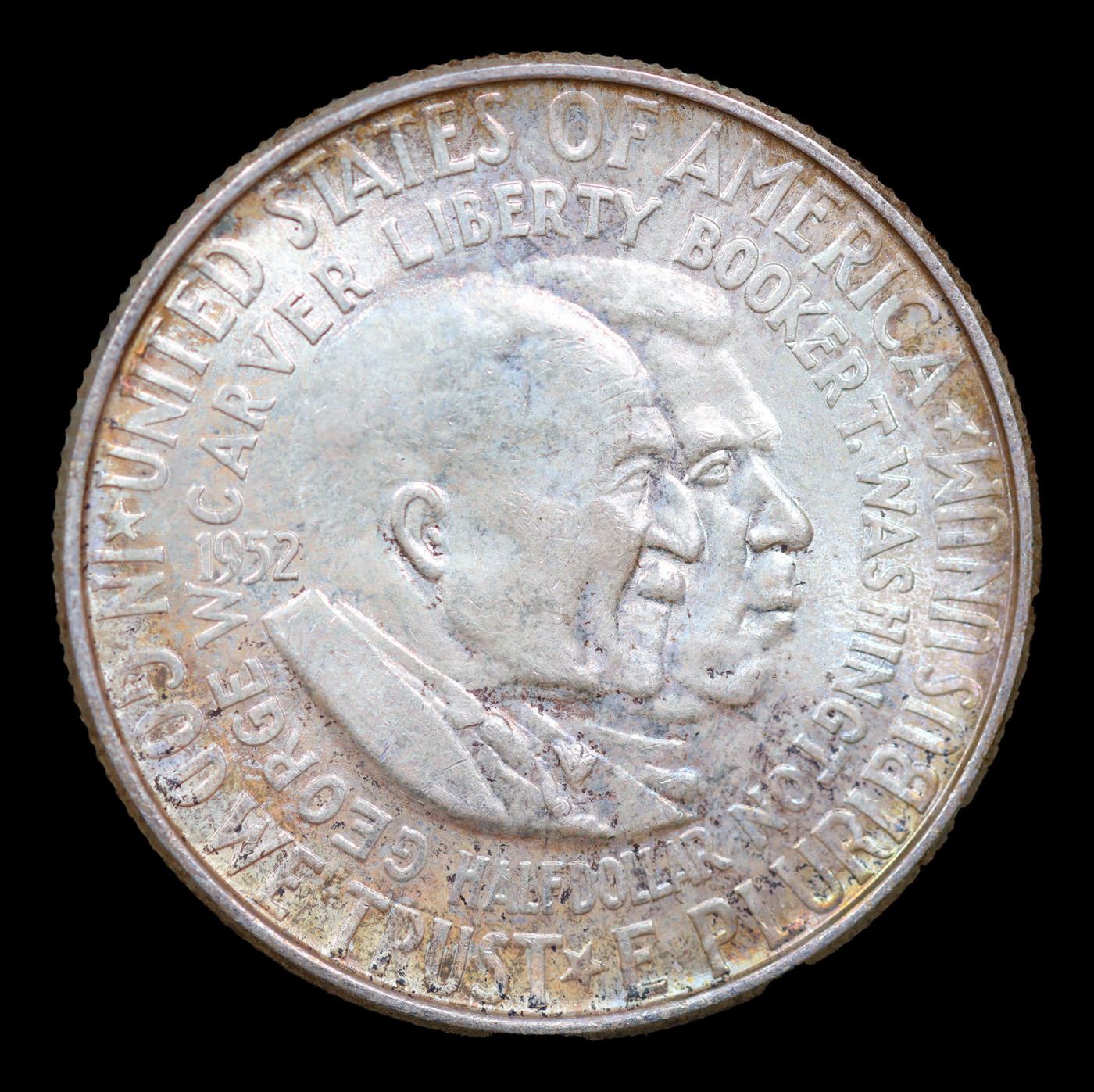 1952-p Wash/Car Old Commem Half Dollar 50c Grades Select Unc. The Final Coin in the Old Commemorative Program. It was Minted to Revive the Ending Booker T Washington Commemorative and to Honor Washington Carver. When examining a Wash/Carver examine the High Points, which are Carver's cheek on the Obverse and the Center of the USA on the Reverse.