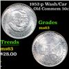 1952-p Wash/Car Old Commem Half Dollar 50c Grades Select Unc. The Final Coin in the Old Commemorative Program. It was Minted to Revive the Ending Booker T Washington Commemorative and to Honor Washington Carver. When examining a Wash/Carver examine the High Points, which are Carver's cheek on the Obverse and the Center of the USA on the Reverse.