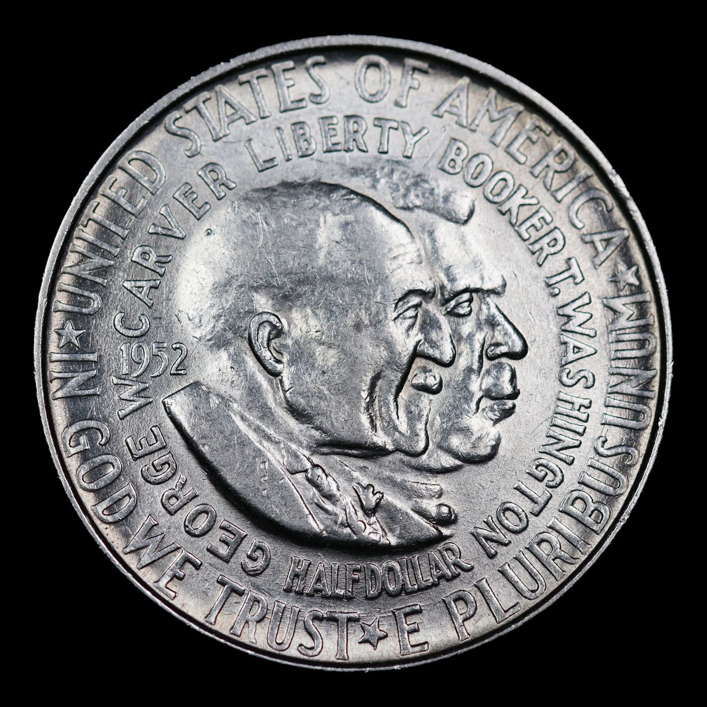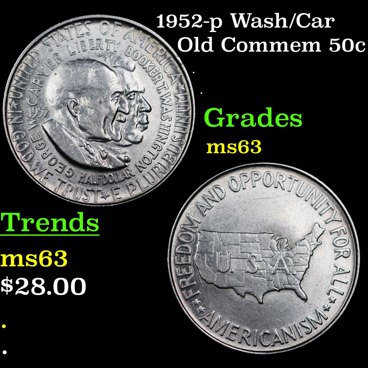 1952-p Wash/Car Old Commem Half Dollar 50c Grades Select Unc. The Final Coin in the Old Commemorative Program. It was Minted to Revive the Ending Booker T Washington Commemorative and to Honor Washington Carver. When examining a Wash/Carver examine the High Points, which are Carver's cheek on the Obverse and the Center of the USA on the Reverse.