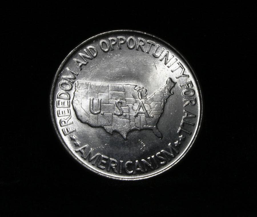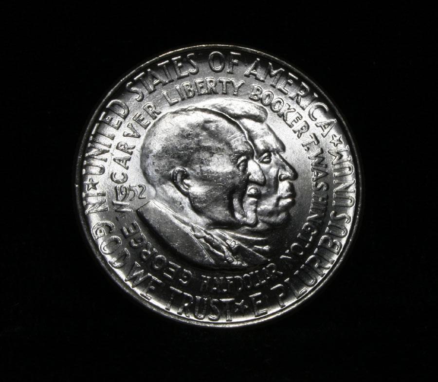 Blast White example with great luster, very nice eye appeal on the reverse with a full cartwheel. The final coin in the old commemorative program, It was minted to revive the ending Booker T Washington Commemorative and to honor Washington Carver. When examining a Wash/Carver examine the high points, which are Carver's cheek on the Obverse and the center of the usa on the reverse. Coin World's Coin Values lists an ms64 at $50 and an ms65 at $60. The Wholesale Greysheet lists ms64 at $35 and ms65 at $65. Estimated Value $50
