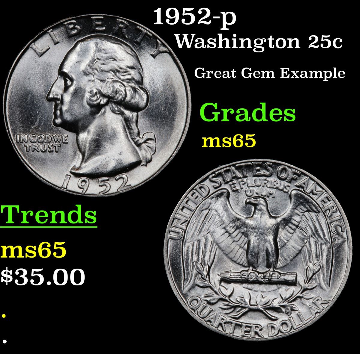 1952-p Washington Quarter 25c Grades GEM Unc.