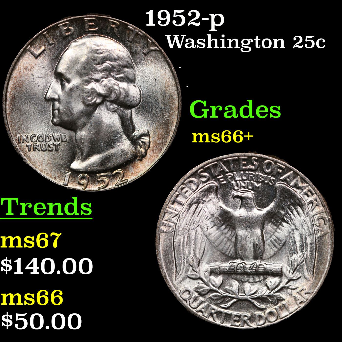 1952-p Washington Quarter 25c Grades GEM++ Unc.