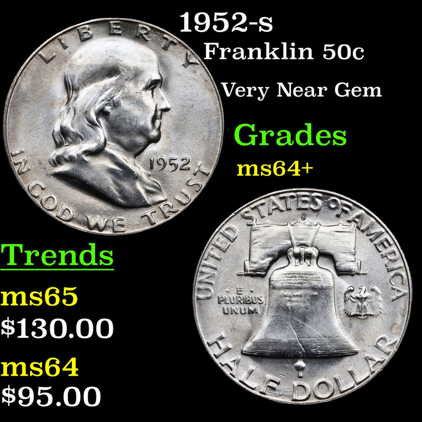1952-s Franklin Half Dollar 50c Grades Choice+ Unc.