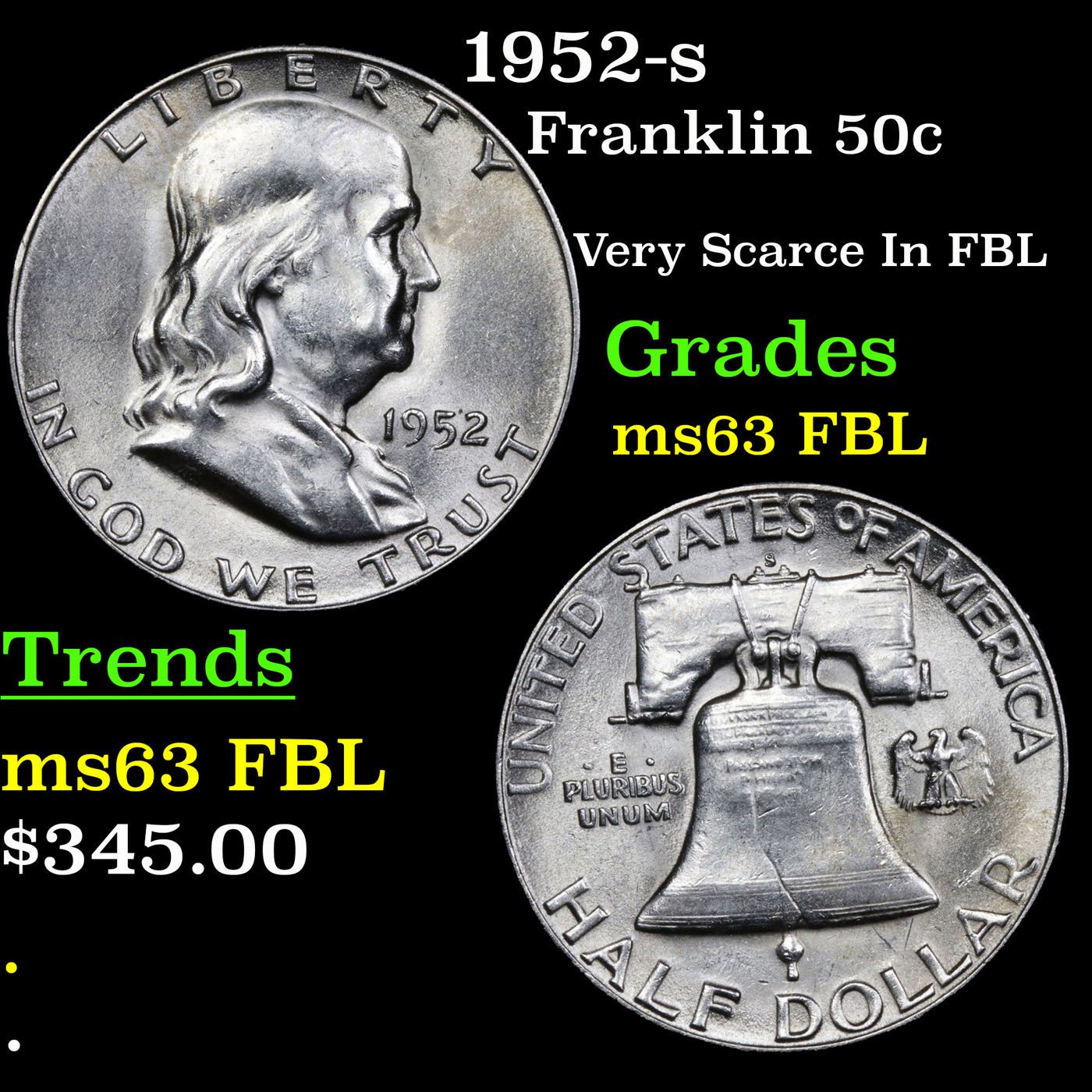 1952-s Franklin Half Dollar 50c Grades Select Unc FBL.