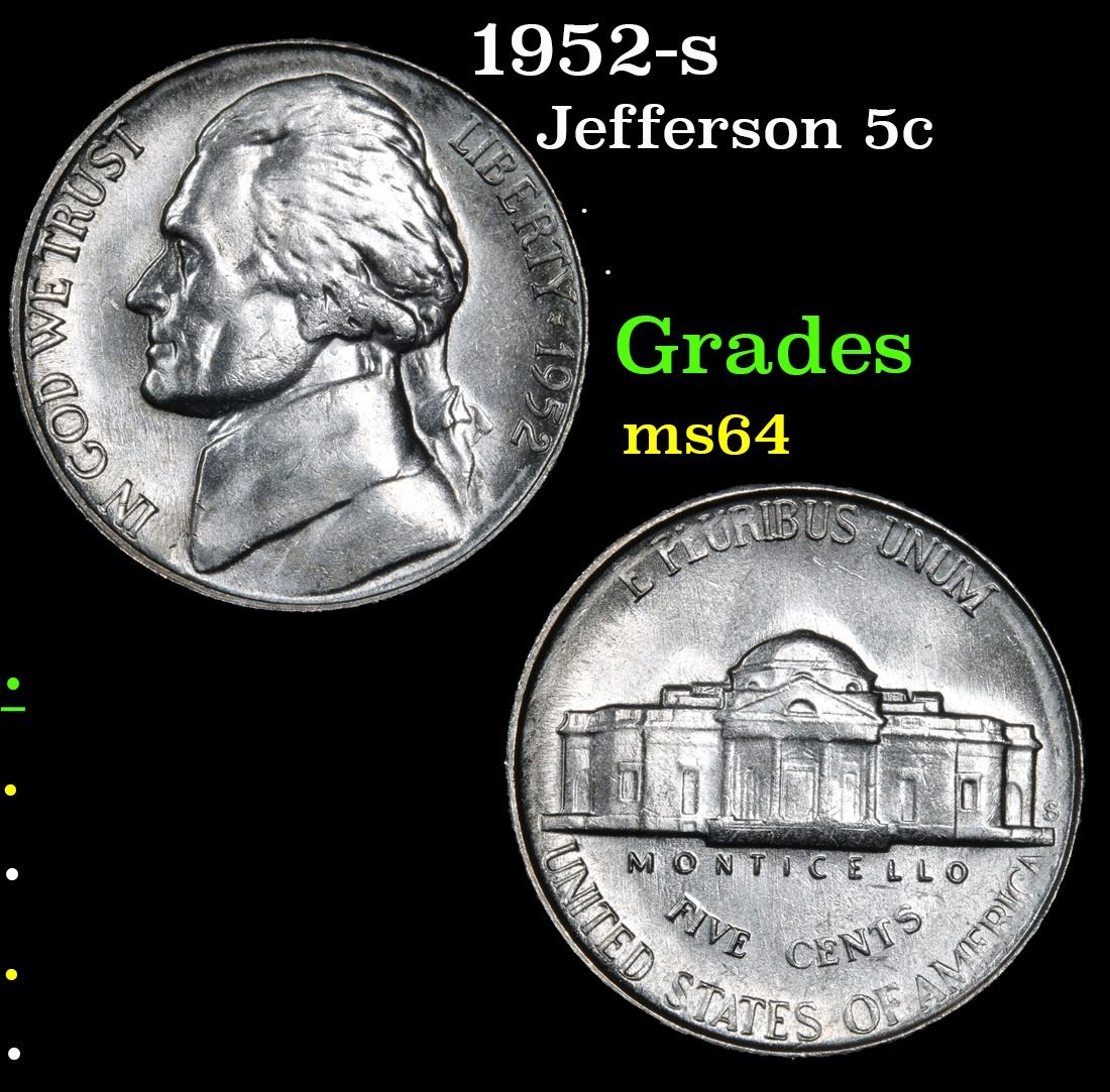 1952-s . . Jefferson Nickel 5c Grades Choice Unc.