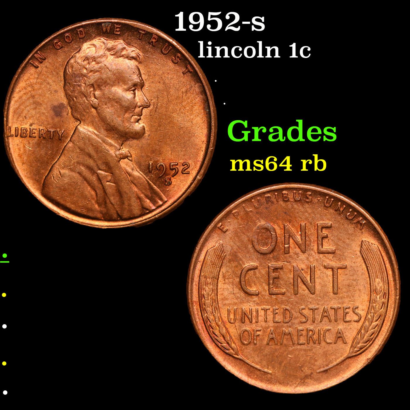 1952-s Lincoln Cent 1c Grades Choice Unc RB.