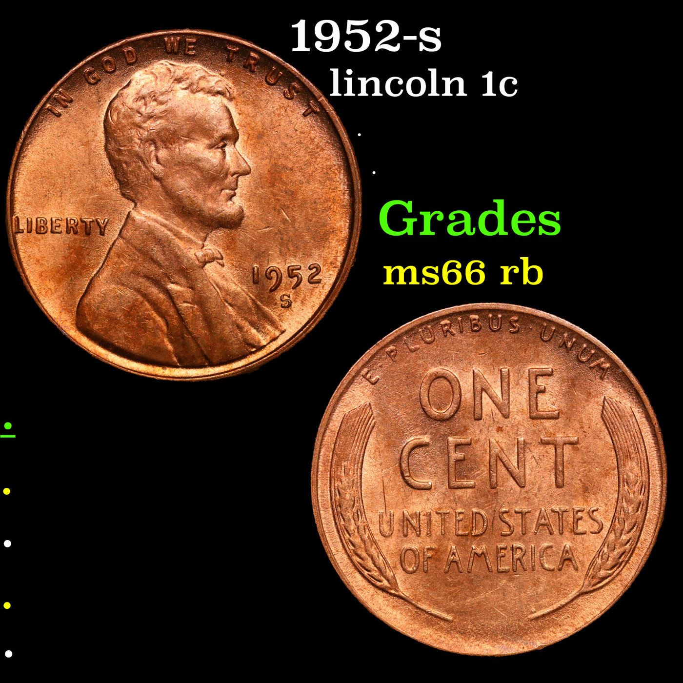 1952-s Lincoln Cent 1c Grades GEM+ Unc RB.