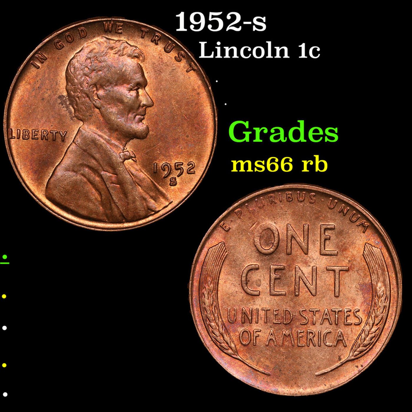 1952-s Lincoln Cent 1c Grades GEM+ Unc RB.