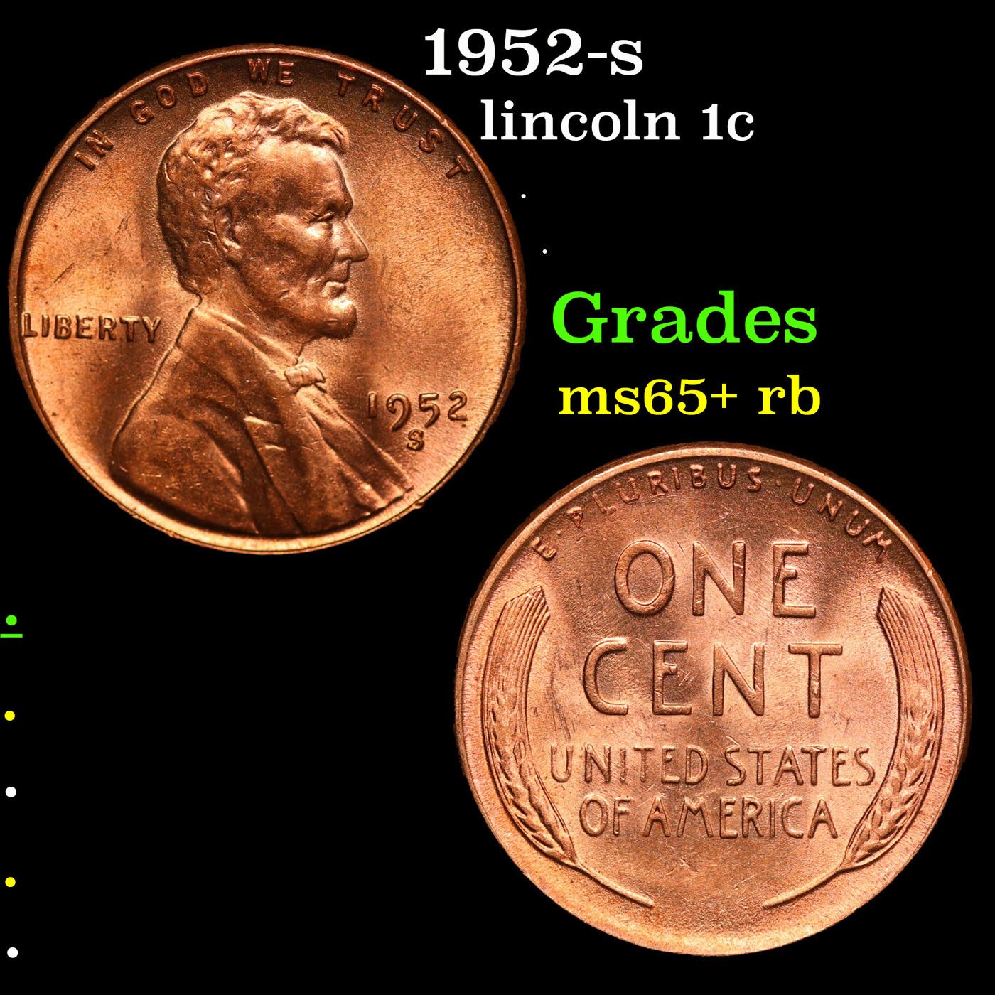 1952-s Lincoln Cent 1c Grades Gem+ Unc RB.