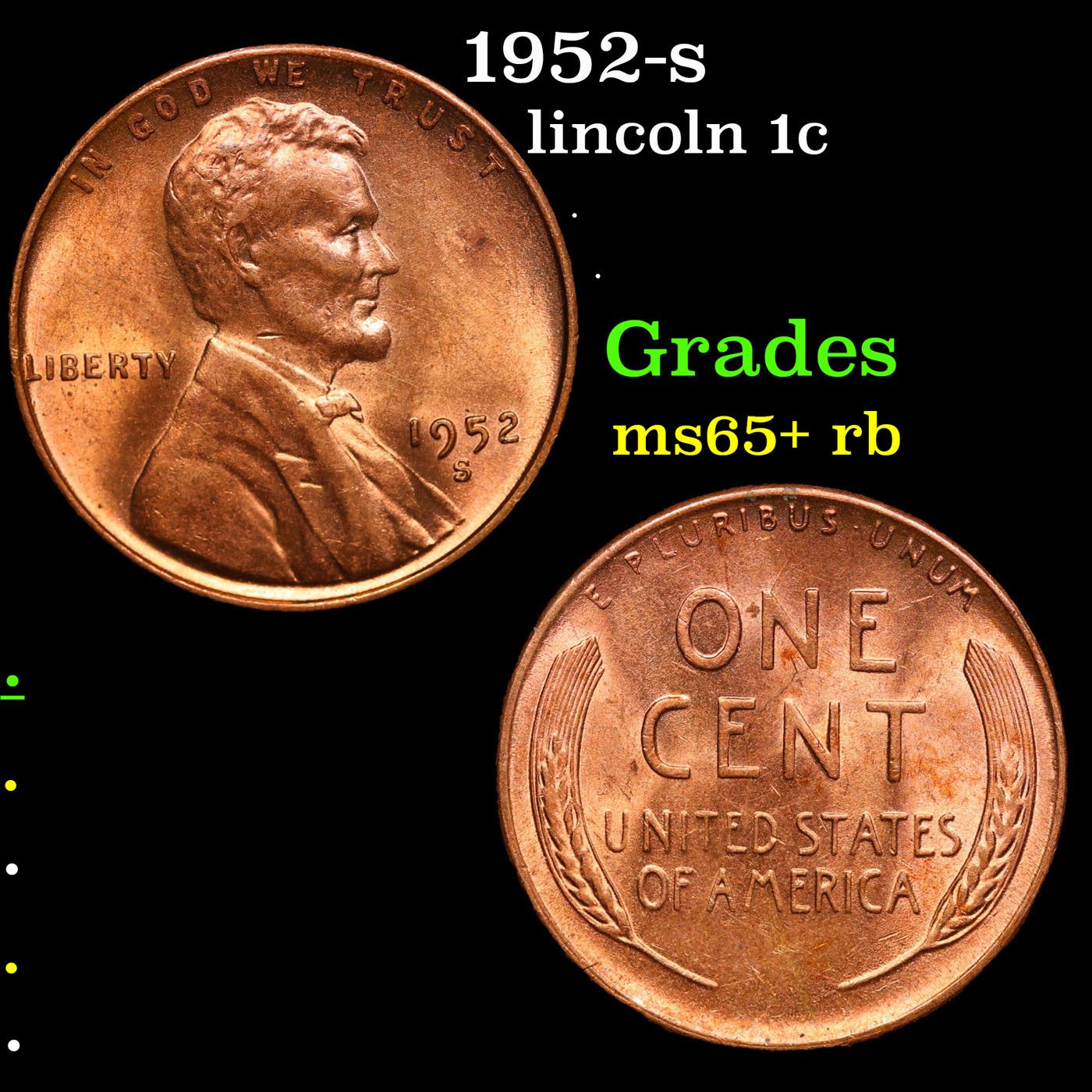 1952-s Lincoln Cent 1c Grades Gem+ Unc RB.